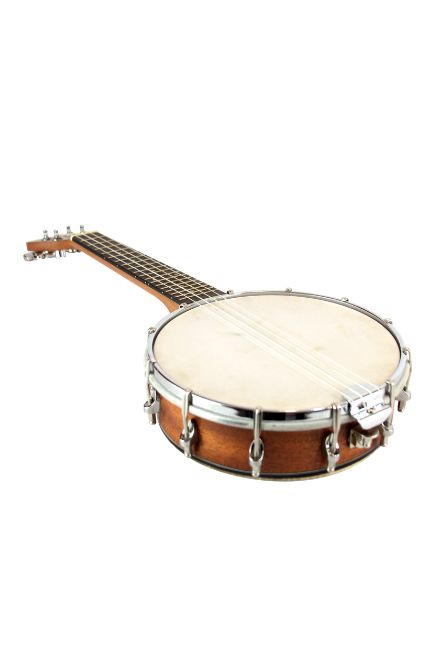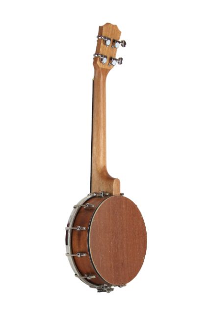 Este modelo incorpora un paño (parche) en la tapa frontal, similar al de un banjo tradicional, que le otorga ese timbre distintivo y una respuesta rítmica inconfundible. El contraste entre la calidez de la madera y la potencia del parche lo convierte en un instrumento ideal para estilos como folk, bluegrass, hawaiano o fusiones modernas.